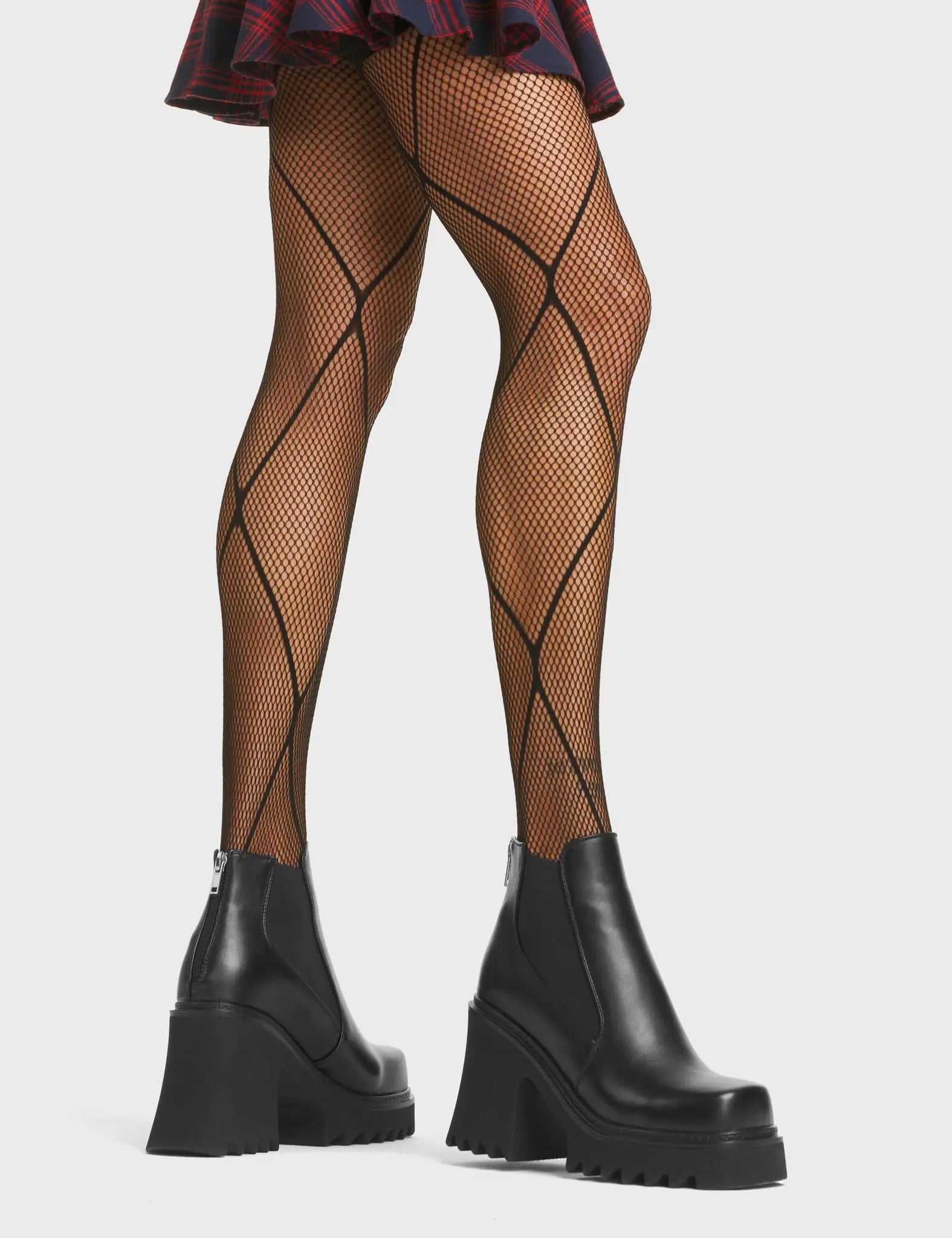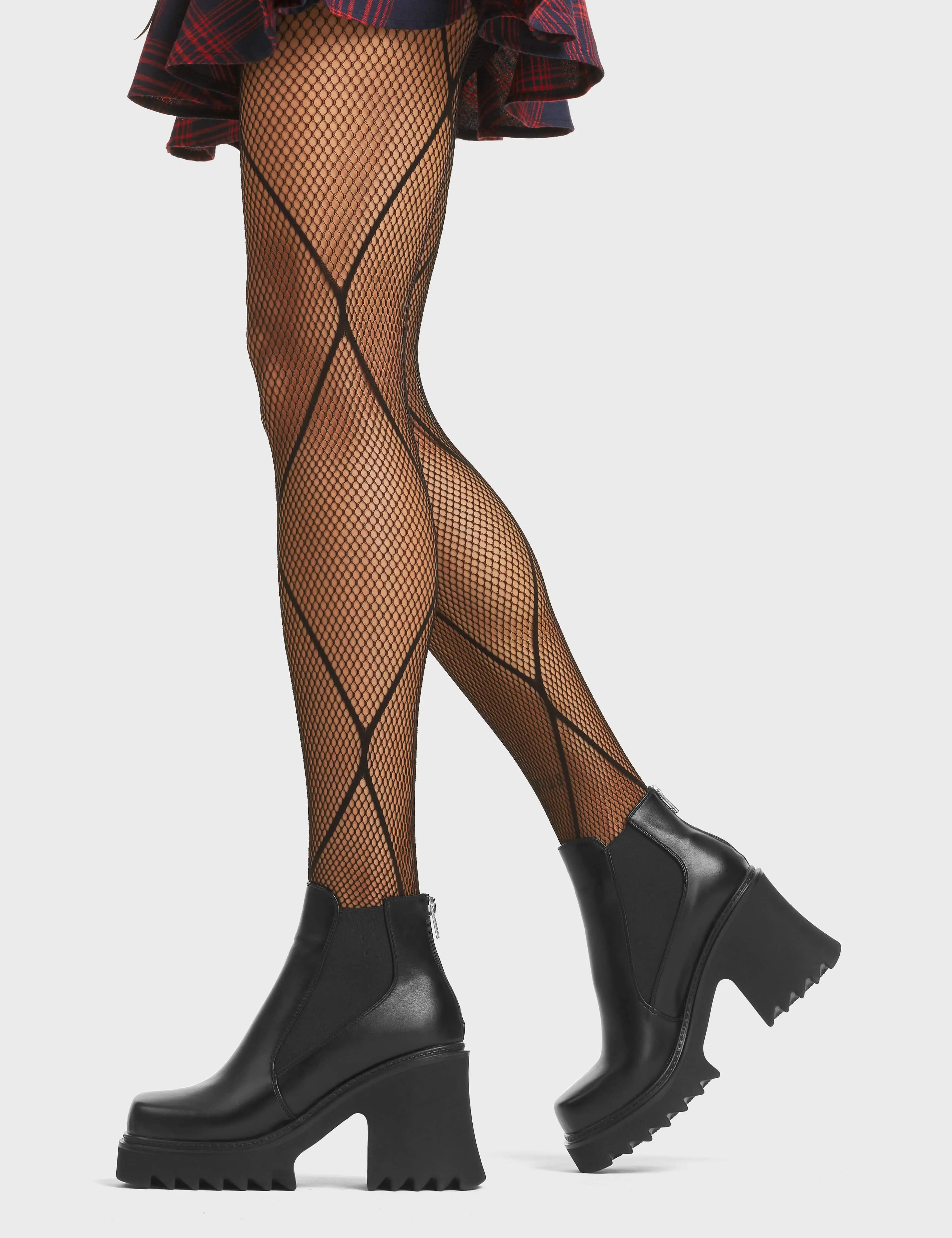 Time's Up Chunky Platform Ankle Boots in Black. These boots feature a minimalist design with a stretchy elastic gusset for an easy fit. Made with eco-friendly materials and 100% cruelty-free!